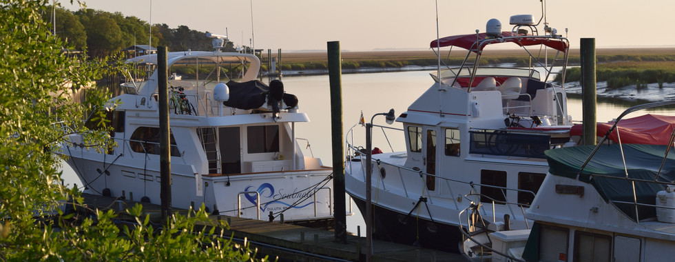 We arrived by 3:00 p.m. to Richmond Hills Marina. A RUSTIC Marina to be frank. But so much character. Complete with floating docks made of wood sections and blue plastic barrels to float it. It rolled, twisted, and bucked under your every step. The marina was exactly what I thought it would be. Rustic! Absolutely, no frills attached. Richard, the Harbor Master is a gruff on the outside kind of older man, but really, he’s just a good ole southern boy. The town of Richmond Hills is about 10 miles away. Just a bit far, even for bikes.